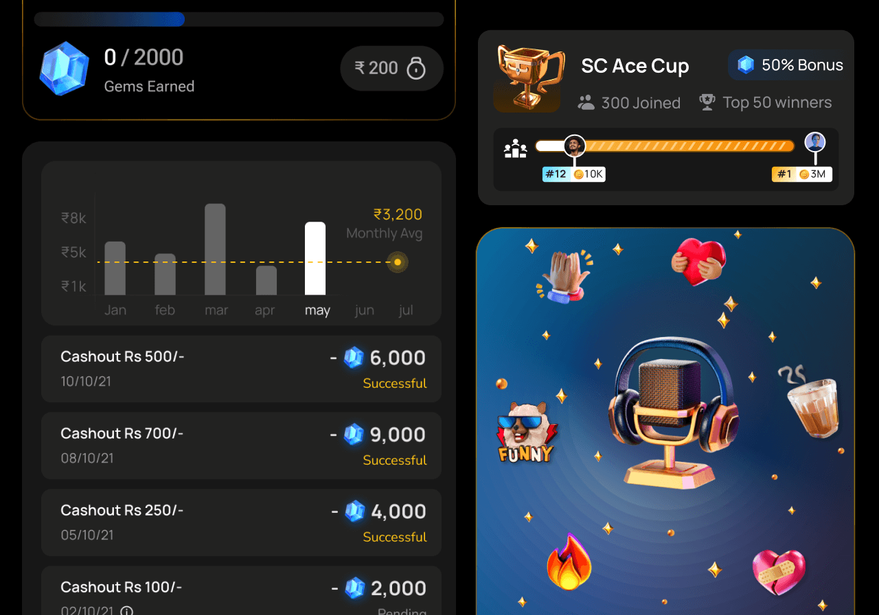 Here are few interesting works from my time at sharechat, while I was building live audio community.